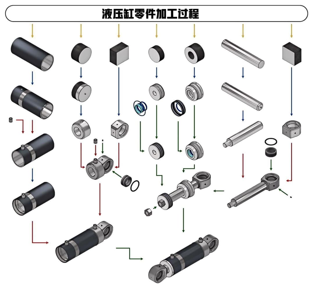 Como componente de actuador clave en sistemas hidráulicos que logra un movimiento lineal bidireccional, la corriente principal cilindro hidráulico de doble efecto y vástago simple En la industria, se fabrican con tres requisitos fundamentales: alta precisión, gran resistencia al desgaste y un sellado riguroso. En particular, el mecanizado profundo de la camisa del cilindro y el mecanizado de precisión del vástago del pistón son los aspectos técnicos clave que determinan la vida útil y el rendimiento del producto. Hoy, utilizando este tipo de cilindro hidráulico como ejemplo e incorporando el concepto de "Diseño para la Fabricación (DFM)", desglosaremos exhaustivamente todo el proceso de fabricación, desde la selección de materiales y equipos hasta los procesos paso a paso, ayudándole a comprender la lógica tecnológica detrás de los componentes hidráulicos de precisión.